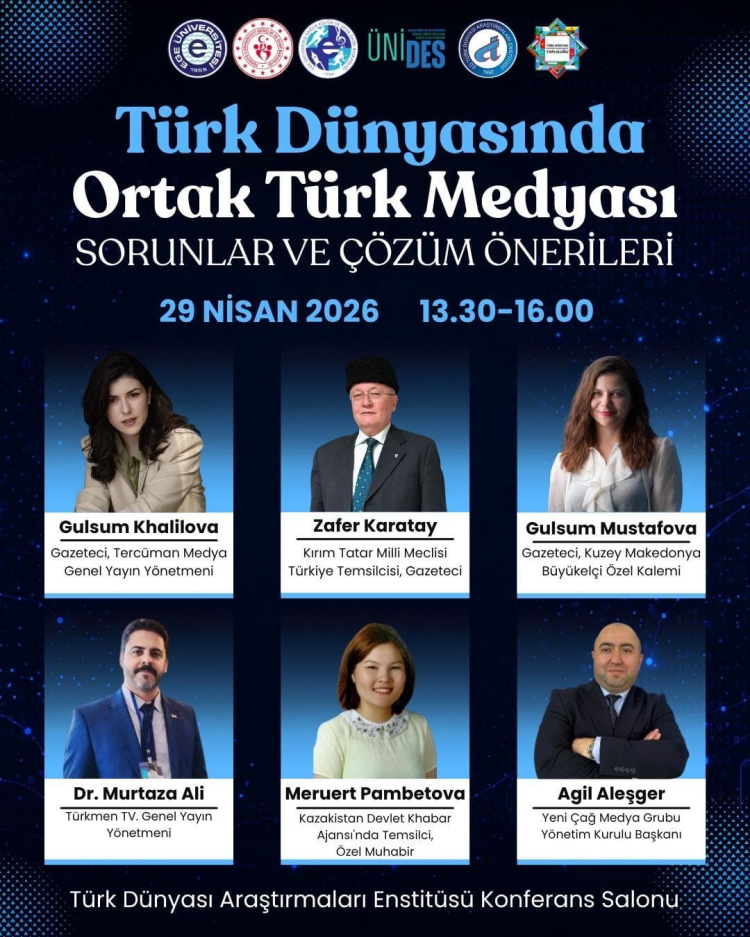 Ege Üniversitesi Türk Dünyası Akademik Araştırmalar Topluluğu tarafından düzenlenecek olan panelde Türk dünyasında ortak bir medya yapısının oluşum sürecinde karşılaşılan sorunlar ve çözüm önerileri, alanında uzman isimler tarafından ele alınacak.