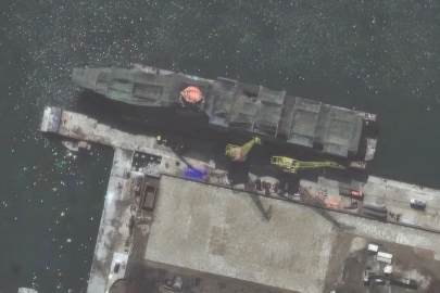 Bağımsız uydu sağlayıcıları Maxar Technologies ve Planet Labs tarafından 6 Nisan'da çekilen görüntüler; Kuzey Kore'nin batı kıyısında, başkent Pyongyang'ın yaklaşık 60 kilometre güneybatısındaki Nampo Tersanesinde suda yapım aşamasında olan bir gemiyi gösteriyor.