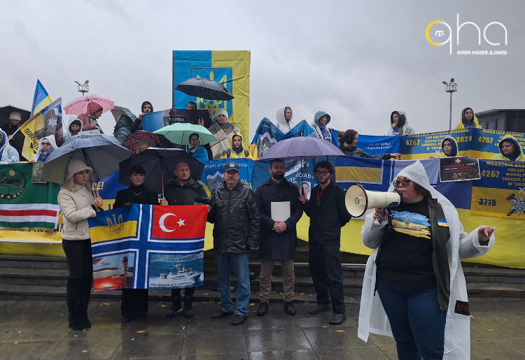 Ardından İstanbul'daki Ukraynalılar, Odakule Meydanı’nda gerçekleştirdikleri eylemde, işgalci Rusya'nın Ukrayna halkına karşı yüzyıllar boyunca yürüttüğü baskı ve soykırım politikasını kınadı.