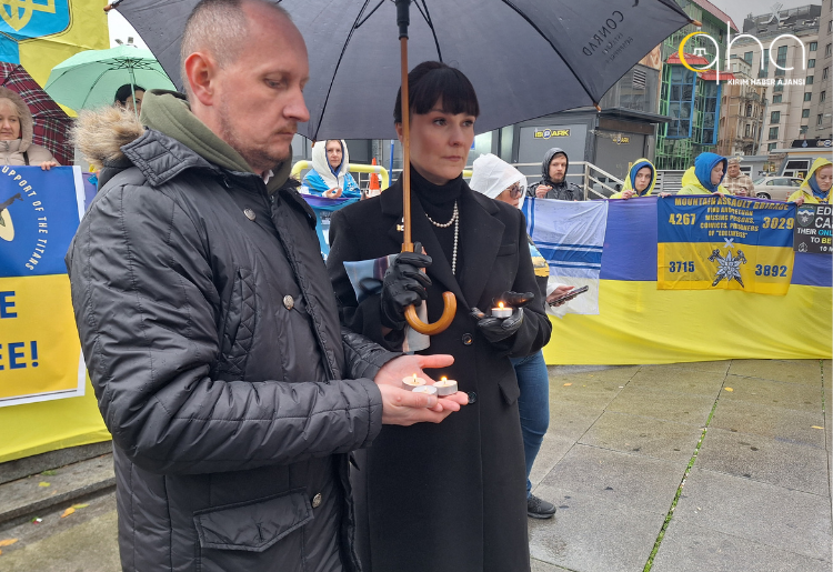 Eylemin sonunda katılımcılar yağan yağmura rağmen Holodomor Soykırımı kurbanları anısına mum yaktı.