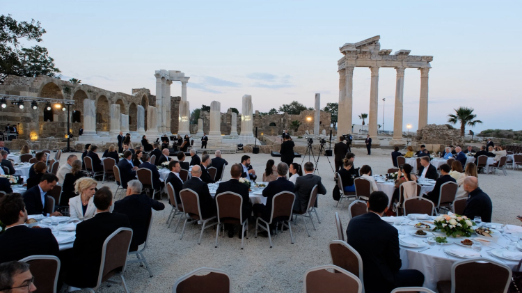 Toplantının açılışında verilen akşam yemeği için Side Arkeolojik Alanı'nın seçilmesinden duyduğu memnuniyeti belirten Rutte, "2500 yıllık tarihin bize baktığı bu yerde durmak gerçekten harika." ifadelerini kullandı.