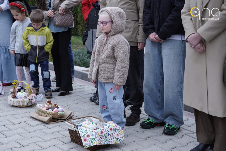 Kutlama kapsamında Ukrain katılımcıların beraberinde getirdiği geleneksel Paskalya sepetleri Metropolit Grigorios tarafından kutsandı.