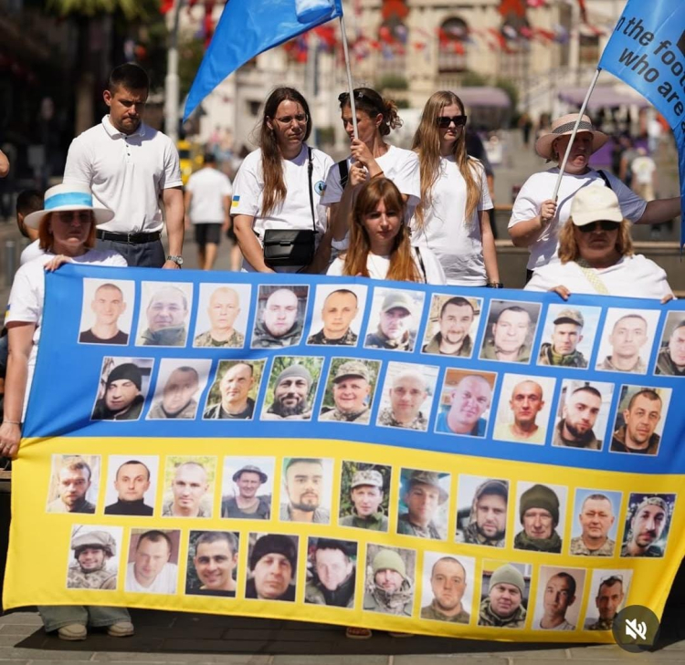 Rus esaretinde olan Ukraynalıların ailelerinin bulunduğu kapsamlı protestoda Ukrayna bayrakları ve pankartlar yer aldı. Topluluk tarafından yapılan açıklamada, "Amacımız tüm dünyanın yardım etmesini sağlamak. Mümkün olduğunca çok aileye uzun zaman boyunca neşe ve huzur gelmesini sağlamak." dedi.