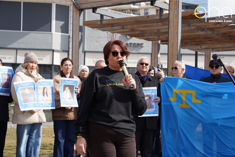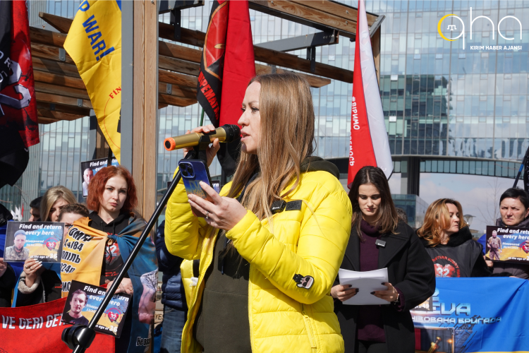 Ukrayna Kültür Derneği Başkan Yardımcısı Aliya Usenova ise, “Biz burada kimseye karşı kin ve nefreti çoğaltmak için değil, bizi duyun diye bulunuyoruz.” dedi. Türkiye’den uzak olmadıklarını arada yalnızca bir deniz olduğunu söyleyen Usenova, “Mesafe hiç önemli değildir, kalbimiz birdir” diyerek sözlerini sürdürdü. Mitinge katılanlardan da söz eden Usenova, çevrede görülen çok çeşitli bayraklara değinerek, bu bayrakları tutan kişilerin hepsinin kayıp, esir ve ölen askerlerin yakınları olduğunu söyledi. Mücadeleye devam edeceklerinin vurgusunu yapan Usenova “Eğer biz susarsak, siz bizi duymazsınız” dedi. Türkiye’ye her zaman destek olduğu için ve yardımları için teşekkür eden Usenova, Türkiye’nin insani konularda olduğu kadar esir değişimindeki rolünün büyüklüğünü de vurguladı. Şu anda Ukrayna’da yaşananların savaş olmadığını ve özgür bir halk olarak her zaman gerçekleri söylediklerini ifade eden Usenova, “Biz buna terör demesek deriz ki sivil insanları öldüren, başka ülkelerin topraklarına silahlı saldırılar düzenleyenler kimdir? Olanlar nedir? Cevabını siz veriniz.” ifadelerini kullandı.