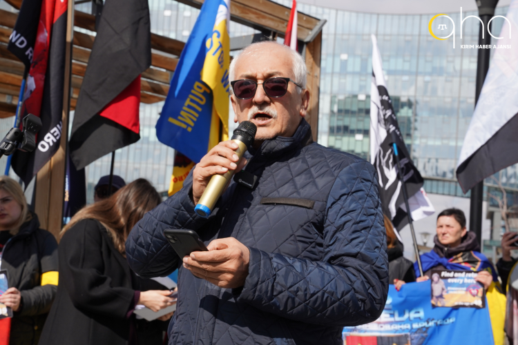 Kırım Derneği Genel Başkanı Mükremin Şahin, Türkiye’de Kırım Tatarlarının çok kalabalık bir şekilde yaşadıklarını ifade etti. Şahin, dünyada yirmiden fazla ülkede Kırım Tatar diasporası olduğunu belirterek, bütün Kırım Tatarlarının Ukrayna halkının yanında olduğunu vurguladı. “Kırım Tatarları geleceklerini Ukrayna halkı ile beraber kurmak istiyorlar” diyen Şahin, bugün dünyada güçlü olanın sözünün geçtiği ve istediğini yaptığı bir süreç yaşandığını da belirtti. Şahin, Birleşmiş Milletlerin kuralları, uluslararası hukuk, adalet gibi kavramların ise artık konuşulmadığını söyleyerek, “güçlü olan, silahı olan, nükleer silahı olan devletlerin her şeyi yapabileceğini zannettiklerini” ancak “Ukrayna halkının iradesi, kararlılığı, Kırım Tatar halkının iradesi hiçbir zaman bu zorbalık karşısında” diz çökmeyeceğini sözlerine ekledi. Ukrayna halkının Kırım Tatar halkıyla omuz omuza mücadeleyi kazanacağını vurgulayan Şahin, “Bizim irademiz, kararlılığımız, savaşma gücümüz, onların füzelerinden, nükleer silahlardan daha kuvvetli” dedi.