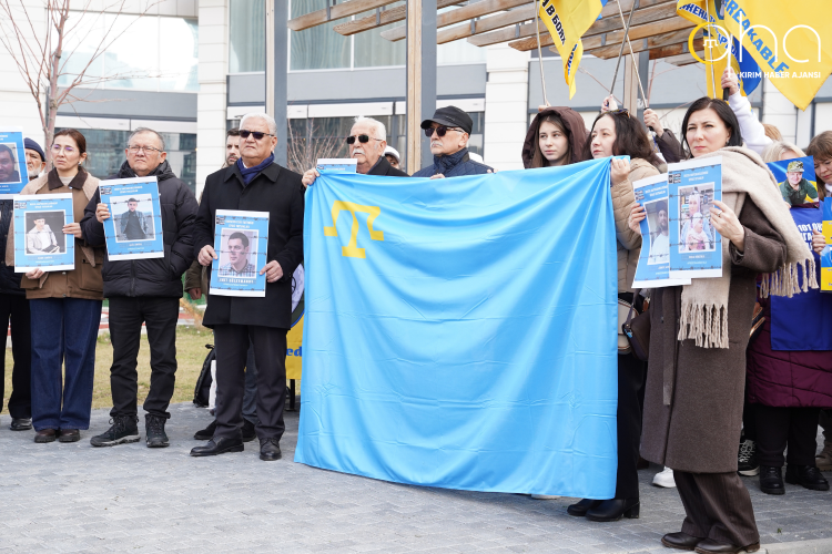 Ukrayna-Rusya Savaşı’nın 4. yıl dönümü nedeniyle Ankara’da Ukrayna Parkı’nda bir araya gelen Ukrainler ve Kırım Tatarları, bu süreçte hayatlarını kaybeden, kayıp ve tutsak olan vatandaşları, üzerinde fotoğraflarının yer aldığı 140 metrelik bir afiş açarak andı.