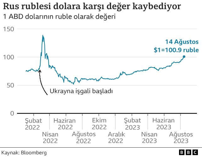Rusya, cephede verdiği ağır kayıpların ardından para piyasalarında çöküşü yaşıyor. Rus rublesi, 2020 yılının kasım ayından bu yana en düşük seviyesine geriledi. Rusya Merkez Bankası bugün, rubledeki hızlı değer kaybı nedeniyle politika faizini 3.5 puan artırarak yüzde 12’ye çıkardı.