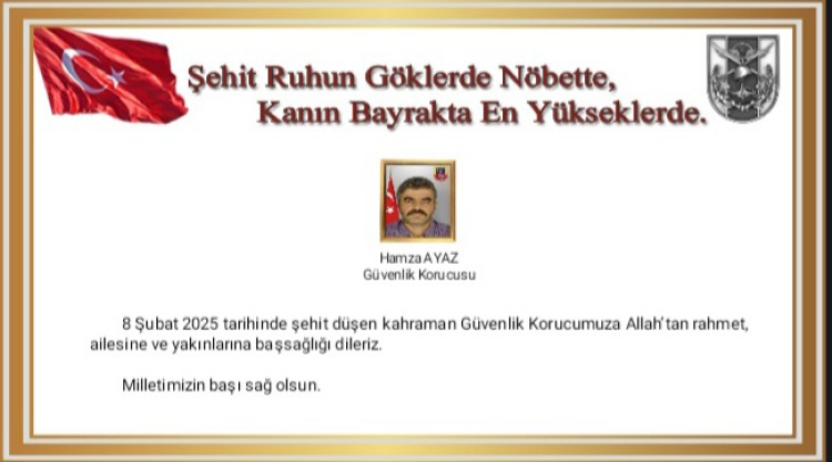 Tür Silahlı Kuvvetleri (TSK) tarafından Hamza Ayaz için yapılan paylaşımda, "8 Şubat 2025 tarihinde şehit düşen kahraman Güvenlik Korucumuza Allah'tan rahmet, ailesine ve yakınlarına baş sağlığı dileriz. Milletimizin başı sağ olsun." ifadeleri kullanıldı.