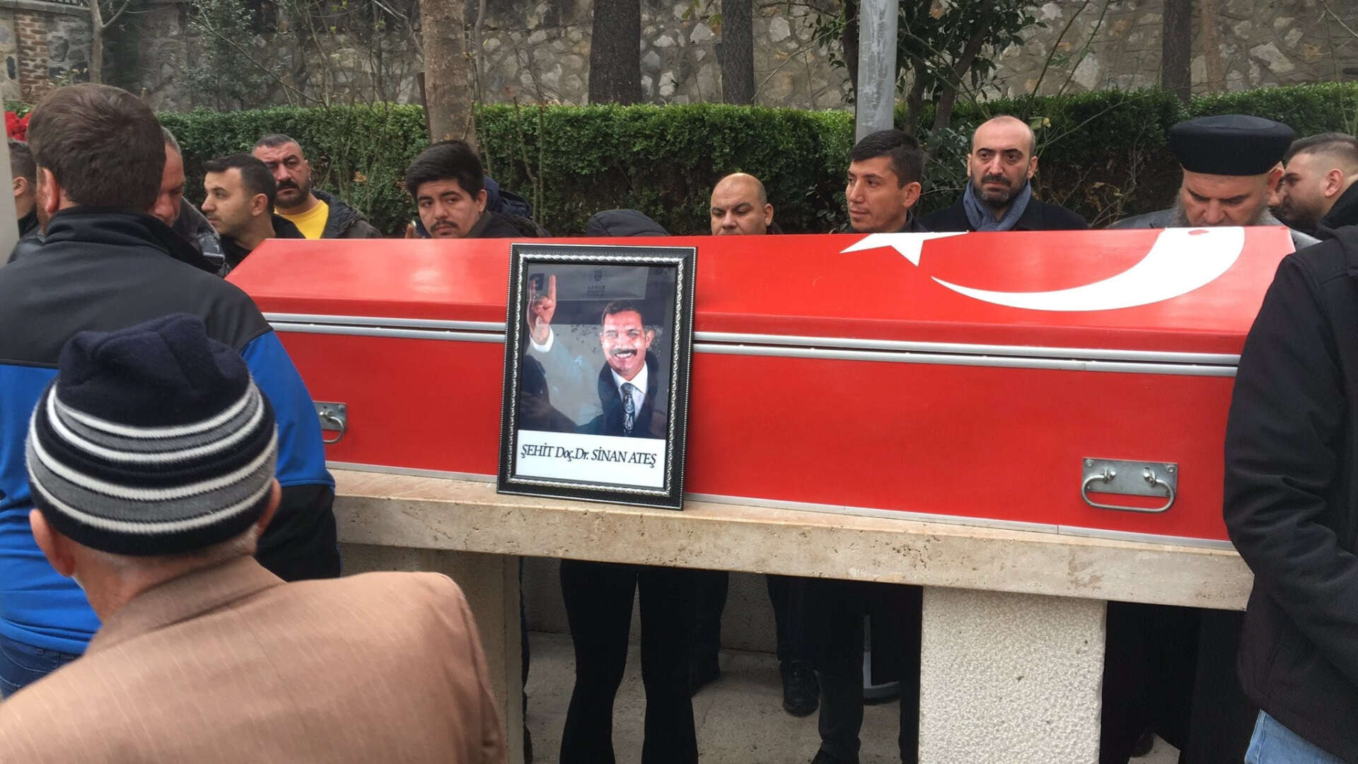 Doç. Dr. Sinan Ateş’in cenazesi bugün sabah saatlerinde Bursa’ya getirildi. Mezarlıklar Müdürlüğündeki işlemlerin ardından Sinan Ateş'in (38) naaşı Bursa’daki Osmangazi ilçesi Başaran Mahallesi’nde bulunan ailesinin evinin önüne getirilerek helallik alındıktan sonra Bursa Ulu Cami’ye götürüldü.