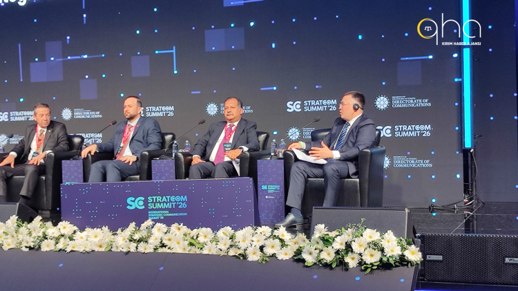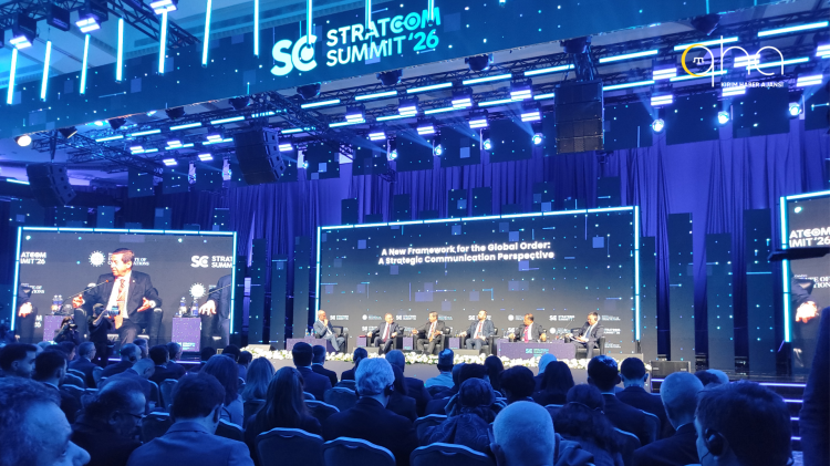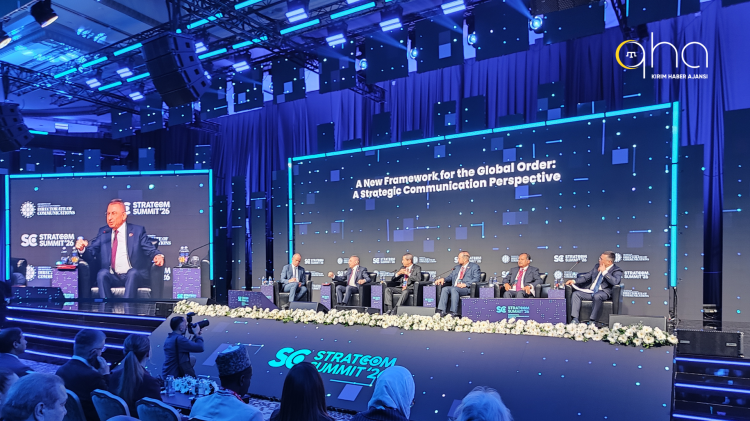 "Uluslararası Sistemde Kırılma: Krizler, Anlatılar ve Düzen Arayışı" temasıyla düzenlenen Uluslararası Stratejik İletişim Zirvesi (STRATCOM 2026) kapsamında, "Küresel Düzende Yeni Çerçeve: Stratejik İletişim Perspektifi" isimli panel tertip edildi. TRT World'den Alican Ayanlar’ın moderatörlüğünde gerçekleştirilen panelde; Türkiye Büyük Millet Meclisi (TBMM) Dışişleri Komisyonu Başkanı ve AK Parti Ankara Milletvekili Fuat Oktay, Kuzey Kıbrıs Türk Cumhuriyeti (KKTC) Dışişleri Bakanı Tahsin Ertuğruloğlu, Kazakistan Kültür ve Enformasyon Birinci Bakan Yardımcısı Kanat İskakov, Suriye Enformasyon Bakanı Hamza Mustafa ve Bangladeş Enformasyon ve Yayıncılık Bakanı Zahir Uddin Svapon (Swapon), konuşmacı olarak yer aldı.