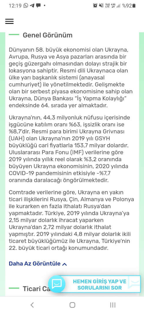 Ticaret Bakanlığının "Kolay İhracat Platformu" internet sitesinde yayımladığı bilgi notunda. Kırım'ın Rusya'ya katılması ifadesinin yer aldığı paragraf silindi.