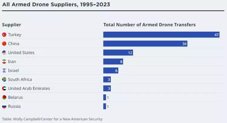 Yeni Amerikan Güvenliği Merkezi tarafından yayımlanan rapora göre Türkiye, 2021 itibarıyla dünyanın en büyük SİHA tedarikçisi oldu. Türkiye, Çin’in 2014’te zirvede olduğu pazar payını geçerek, SİHA pazarında lider konuma yükseldi.