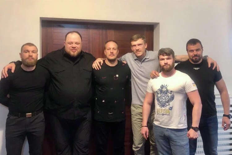 36. Ayrı Deniz Tugayının Komutan Vekili Sergiy Volınskıy (Volına), Azov Ulusal Muhafızları Özel Birim Komutanı Denıs Prokopenko (Redisa), Azov Alayı Komutan Yardımcısı, Svyatoslav Palamar (Kalına), Azov askeri Oleg Homenko (Apis) ve Ulusal Muhafız 12. Operasyonel Tugayının Komutanı Denıs Şlega.
