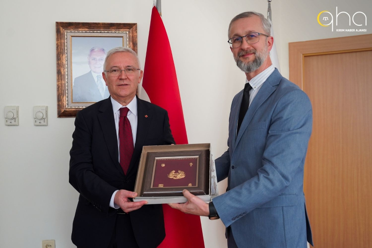 Ukrayna'nın Ankara Büyükelçisi Nariman Celâl, Başkent Üniversitesi Rektörü Prof. Dr. Hakan Özkardeş'e nezaket ziyaretinde bulundu. Görüşmede Rus saldırıları altındaki Ukrayna ve Rus işgali altındaki Kırım ile Kırım Tatarlarının son durumu ele alındı.