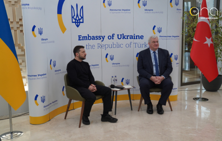 Ukrayna Cumhurbaşkanı Volodımır Zelenskıy, bugün Türkiye ziyareti kapsamında Ukrayna'nın Ankara Büyükelçiliğinde, Ukrain ve Kırım Tatar diasporası ve basın mensuplarıyla bir araya gelerek; kendisine yöneltilen sorulara yanıt verdi.