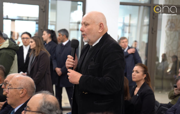 Kırım Türkleri Kültür ve Yardımlaşma Derneği Genel Başkanı Mükremin Şahin ise Cumhurbaşkanı olduğunda Zelenskıy'ın ilk ziyaretinin Ankara'ya olduğunu ve Kırım Derneğinin açılışını yaptığını anımsattı. Genel Başkan Şahin, Ukrayna liderine, "Rusya, işgal girişimi başlattığında tüm dünya işgalin tamamlanacağını zannetti. Hatta sizin için Polonya'ya gideceğiniz ve orada bir hükûmet kurulacağı öne sürüldü. Sizler birçok Kırım Tatarının ve Ukrainin beklediği şeyi yaptınız, savaştınız. Bizi onurlandırdığınız için teşekkür ederiz. Ukrayna, toprak bütünlüğünden taviz vermeden bu siyasetine devam edecek mi? Kırım Tatarlarının anayasadaki durumu üzerine görüşünüz nedir?" sorusunu yöneltti.