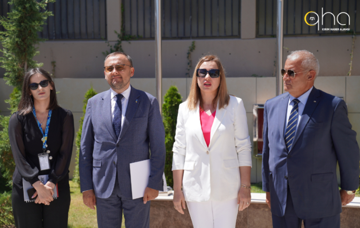 Ukrayna'nın Ankara Büyükelçiliği 26 Haziran Kırım Tatar Milli Bayrak Günü münasebetiyle düzenlediği etkinlik çerçevesinde tarak tamgalı gökbayrağı göndere çekti.