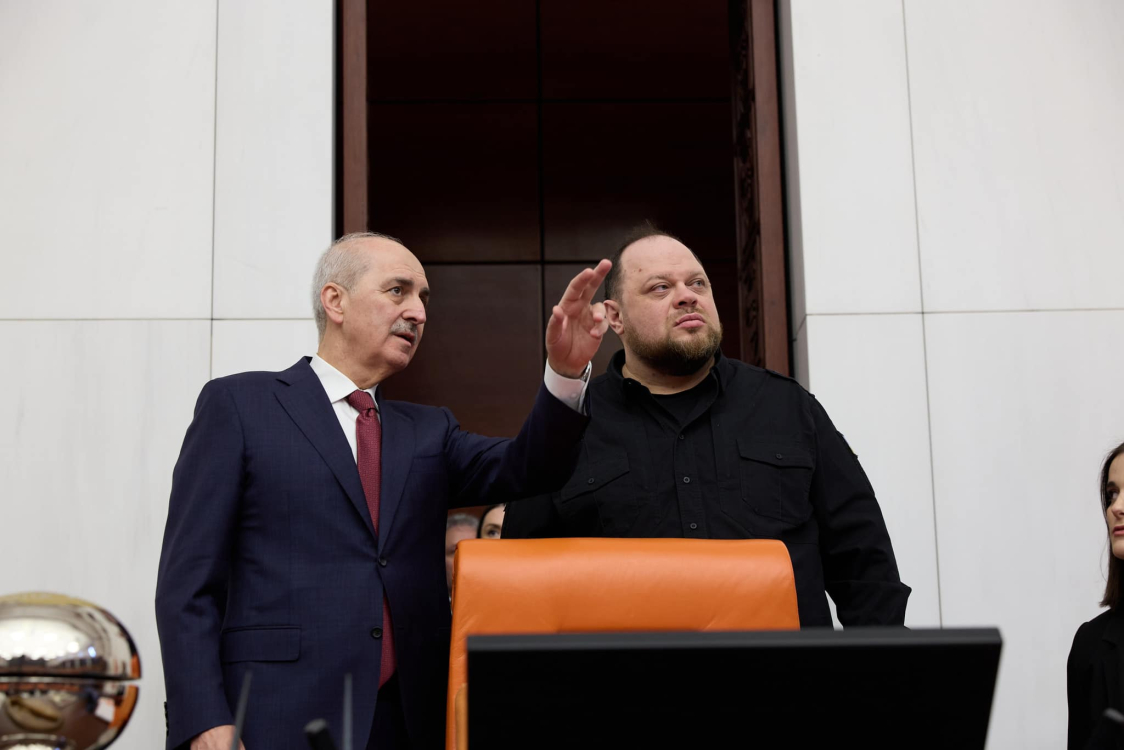 Ukrayna Parlamentosu (Verkhovna Rada) Başkanı Ruslan Stefançuk (Ruslan Stefanchuk), 2 günlük resmî ziyareti kapsamında Türkiye Büyük Millet Meclisi Başkanı Numan Kurtulmuş ile14 Mayıs 2024 tarihinde görüşmüştü. Kurtulmuş görüşmede, Ukrayna ile Türkiye arasındaki ortaklığın anahtarının Ukrayna Cumhurbaşkanı Volodımır Zelenskıy ile Türkiye Cumhuriyeti Cumhurbaşkanı Recep Tayyip Erdoğan arasındaki diyaloğun, parlamentolar arası etkileşimin, Dışişleri ve Savunma Bakanlıklarının arasındaki iş birliği olduğunu vurgulamıştı. Stefançuk ise görüşmenin ardından yaptığı değerlendirmede, "Rusya'nın tam ölçekli işgalinin ilk günlerinden bu yana Ukrayna'nın egemenliğini, bağımsızlığını ve toprak bütünlüğünü desteyen Türkiye, sürdürülebilir ve adil barışa ulaşmak için önemli çabalar gösteriyor." ifadelerini kullanmıştı.