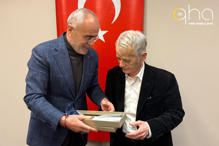 Yalçın Topçu; Mustafa Abdülcemil Kırımoğlu'na, Ahtem Çiygöz'e ve parlamento üyelerine hediye takdim etti.