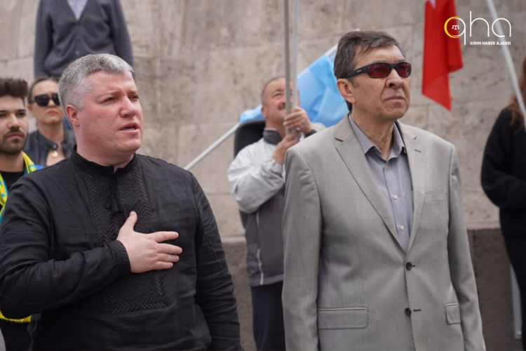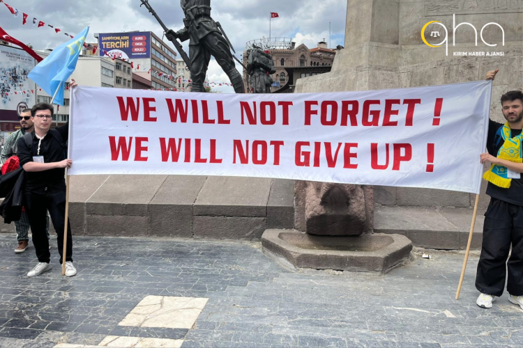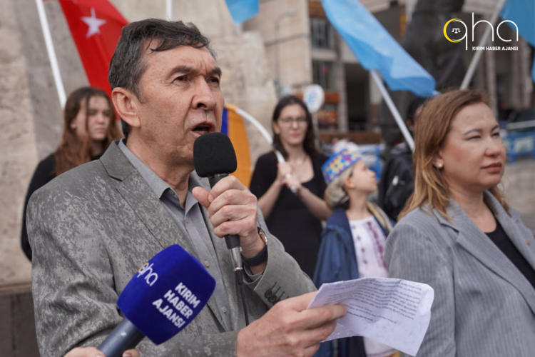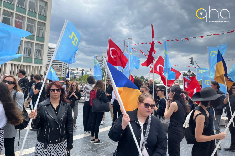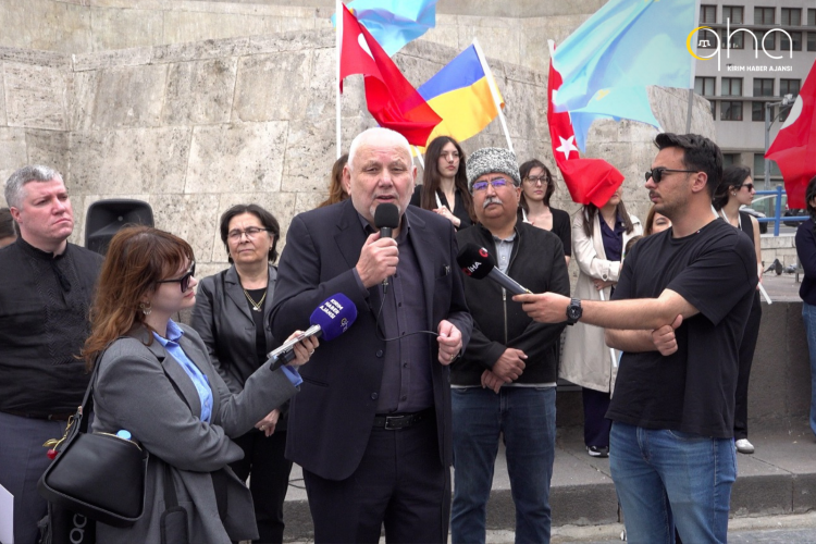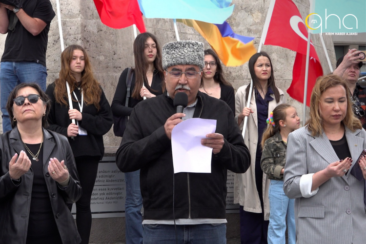 Ankara Ulus Meydanı'ndaki Atatürk Heykeli önünde düzenlenen mitingde, 1944 Kırım Tatar Sürgünü ve Soykırımı’nın 81. yılı anıldı.