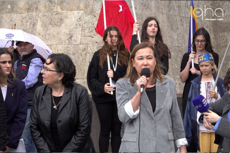 Anma mitinginin açılış konuşmaları, Kırım Türkleri Kültür ve Yardımlaşma Derneği Genel Başkanı Şahin tarafından yapıldı. Şahin cümlelerine, 1944 Kırım Tatar Sürgünü ve Soykırımı’nın üzerinden 81 yıl geçmesine rağmen sürgünün etkilerinin hâlâ devam ettiğini vurgulayarak başladı. Aynı şekilde 2014 yılında Kırım’ın Rusya tarafından işgal edilmesine ithafen konuşan Şahin, “Rusya idaresi Kırım Tatar halkına tahammül edemiyor. Rusya idaresi Kırım Tatarların dünyadaki varlığını kabul edemiyor!” şeklinde vurgu yaptı.