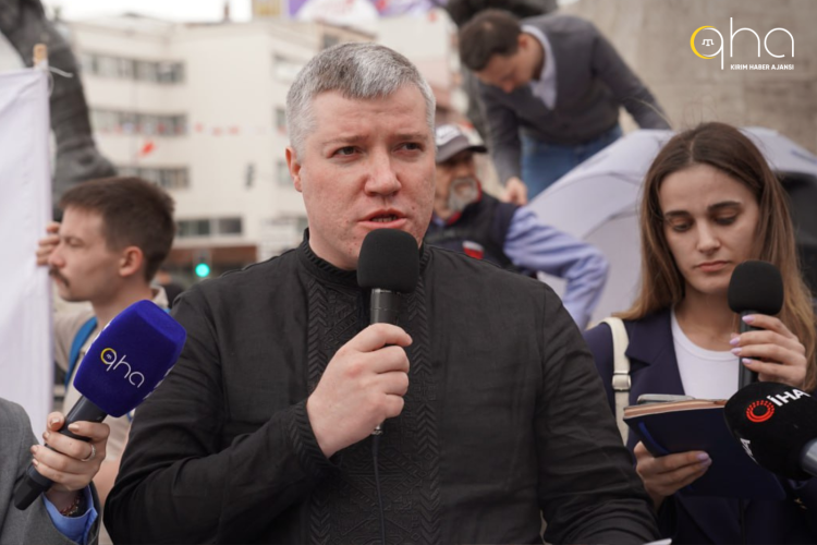 Miting, Ukrayna'nın Ankara Büyükelçiliği Maslahatgüzarı Oleksiy Çernışev’in konuşmaları ile devam etti. Çernışev ifadelerine, “Bugün Türkiye'nin başkentinin merkezinde, 81 yıl önce cani emperyal-komünist rejim tarafından gerçekleştirilen Kırım Tatar Sürgünü kurbanlarının yasını tutmak için toplanan herkesi selamlıyorum” diyerek başladı. Kırım Tatarlarının acısının tüm Ukraynalıların acısı olduğunu belirten Çernışev, 1944 Sürgünü ve Soykırımı’nın Ukrayna’da resmî olarak insanlığa karşı işlenmiş bir soykırım suçu olarak kabul edildiğini hatırlattı.