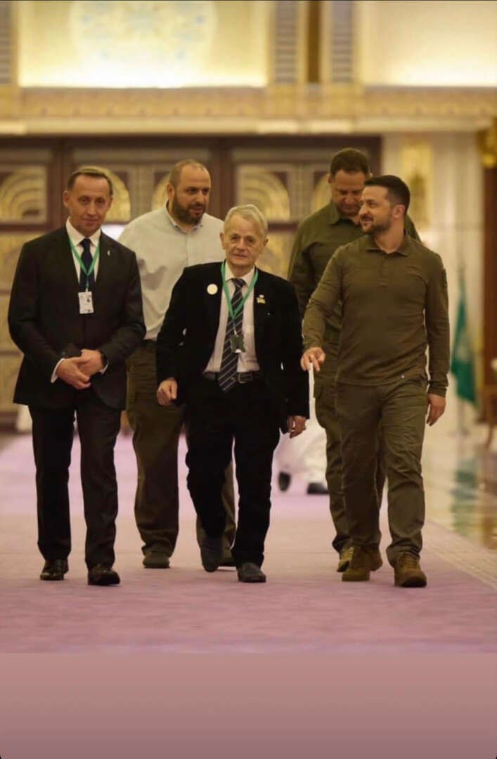 Kırım Tatar halkının milli lideri, Ukrayna Milletvekili Mustafa Abdülcemil Kırımoğlu, Zelenskıy‘ın Suudi Arabistan ziyaretine eşlik etti. Heyette; Ukrayna Cumhurbaşkanlığı Ofisi Başkanı Andriy Yermak, Ukrayna Cumhurbaşkanlığı Ofisi Başkan Yardımcısı Andriy Sıbiga, Ukrayna Varlık Fonu Başkanı Rüstem Umerov, Ukrayna Cumhurbaşkanının Arap ve Müslüman Ülkelerle İlişkilerinden Sorumlu İstişare Kurulu Sekreteri Snaver Seythalil ve Ukrayna devlet yetkilileri yer aldı.