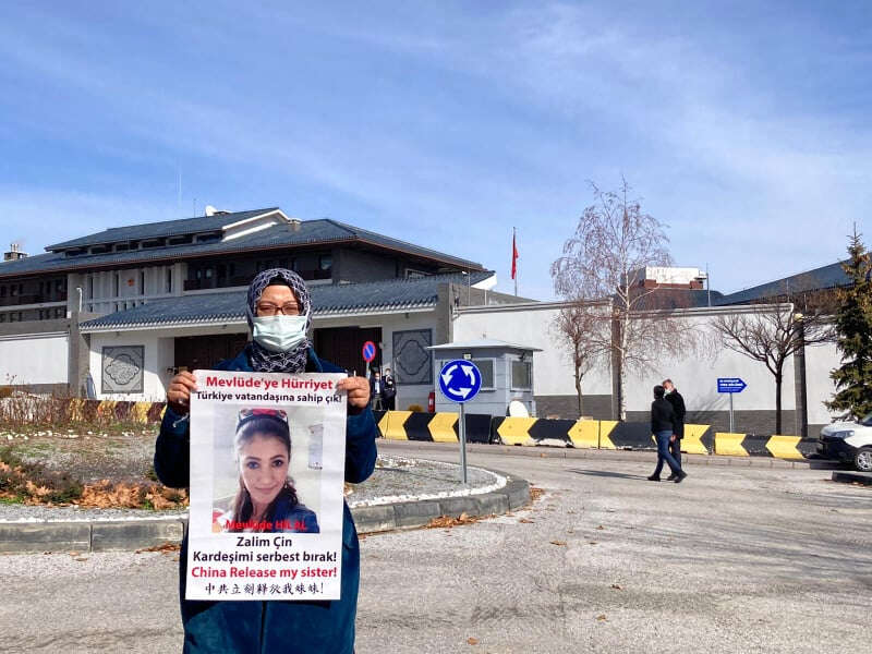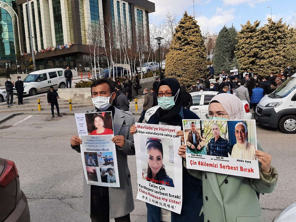 Çin’in Ankara Büyükelçiliği önünde 3 Şubat 2021’den bu yana aile nöbeti tutan Doğu Türkistanlı kamp mağdurları, Pekin yönetimine seslerini duyurmak için mücadeleye devam ediyor. Bugün Çin Büyükelçiliğine gitmek üzere kaldıkları evden çıkmak isteyen kamp mağduru Doğu Türkistanlılara polis engel oldu ve Ankara'dan ayrılmalarını istedi. Uygur Türkü kamp mağdurlarına çağrı yapan Ankara polisi Valilik izni olmadığı gerekçesiyle eyleme izin verilmeyeceğini duyurdu.