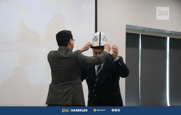 Program kapsamında Atatürk Üniversitesi Türk Dili ve Edebiyatı Bölümü doktora öğrencisi, aynı zamanda Kırım Haber Ajansı Muhabiri Sabırbek Börübay, Prof. Dr. Süer Eker’e geleneksel Kırgız Kalpağı ve Kırgızistan bayrağı hediye etti.
