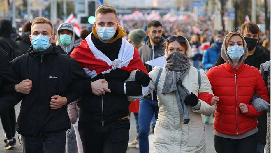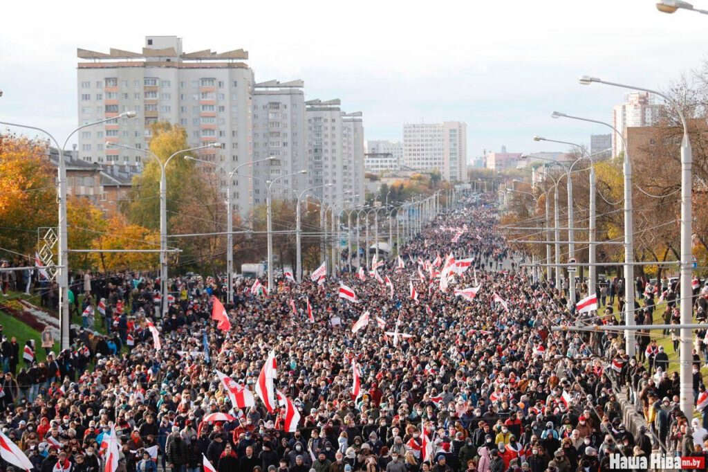 Belarus'ta Lukaşenko rejiminin tehditlerine rağmen on binlerce kişi, 18 Ekim 2020 tarihinde ülke genelinde düzenlenen hükumet karşıtı gösterilere katıldı.