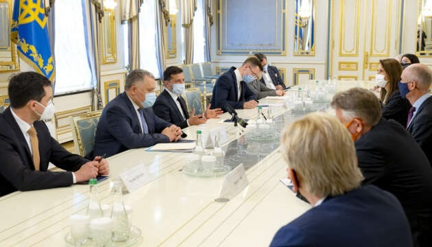 Bakanlar, Kuleba ile görüşmesinin ardından Ukrayna Cumhurbaşkanı Volodımır Zelenskıy ile bir araya geldi. Taraflar görüşmede Ukrayna'nın doğusundaki durumu ele aldı. Cumhurbaşkanı Zelenskıy, Dışişleri Bakanlarına Ukrayna doğusundaki güvenlik durumu hakkında detaylı bilgi vererek Ukrayna’nın barışı sağlamak için attığı adımları anlattı. Ukrayna ziyaretlerine Donbas bölgesinden başladıkları için Bakanlara teşekkür eden Zelenskıy, "Ukrayna'nın doğusunda yaşanan olayları kendi gözlerinizle görmenin çok önemli olduğunu düşünüyorum. Lugansk bölgesindeki Şçastya kentini ziyaret ettiğinizi biliyorum. Donbas’a nasıl davrandığımızı gördünüz. Altyapısını yenilemek için yatırım yapıyoruz." diye konuştu.