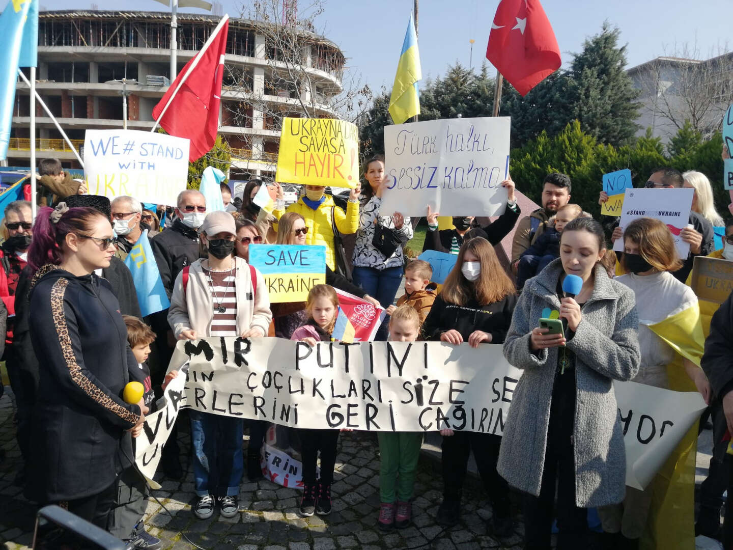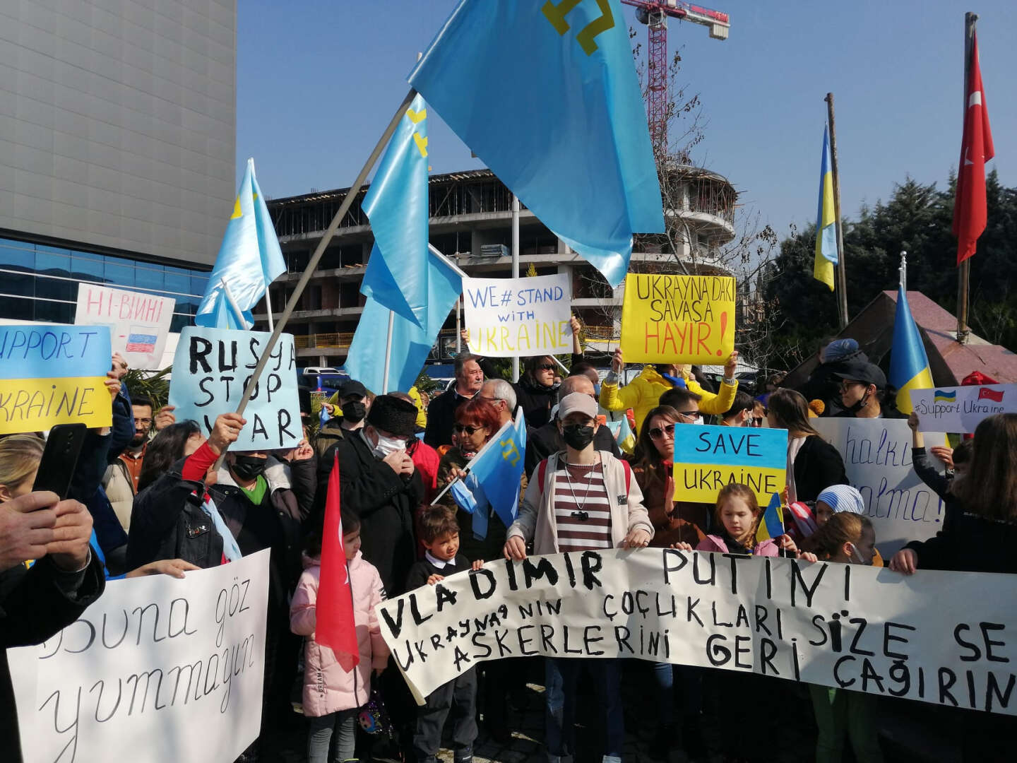 Bursa'da dün, Kırım Tatarları ve Ukrainler tarafından Rusya'nın Ukrayna'yı işgal girişimi protesto edildi. Kırım Derneği Bursa Şubesi, protesto gösterisinde Dünya Kırım Tatar Kongresinin Rusya'nın saldırısı hakkında yayımladığı bildiriyi okudu. Eylemde, saldırılarda hayatını kaybedenler için saygı duruşu ve Ukrayna Milli Marşı'ndan sonra sık sık, saldırıların bir an önce son bulması, Ukrayna'ya destek ile ilgili sloganların atıldığı mitingde önce Bursa Ukraynalılar Derneği Başkanı Viktoriya Afşar tarafından bir konuşma yapıldı. Ardından, Ukrayna Dışişleri Bakanlığı bildirisi okundu.