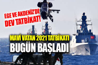 Mavi Vatan-2021 Tatbikatı, 25 Şubat-7 Mart arasında Ege Denizi ve Akdeniz'de gerçekleştirilecek. Bugün başlayacak dev tatbikatta, toplam 87 gemi, 27 uçak, 20 helikopter, İHA ve SİHA'lar da görev alacak. Tatbikatta gemilerin harbe hazırlık durumunun değerlendirilmesinin yanı sıra ortak harekatlar da gerçekleştirilecek.