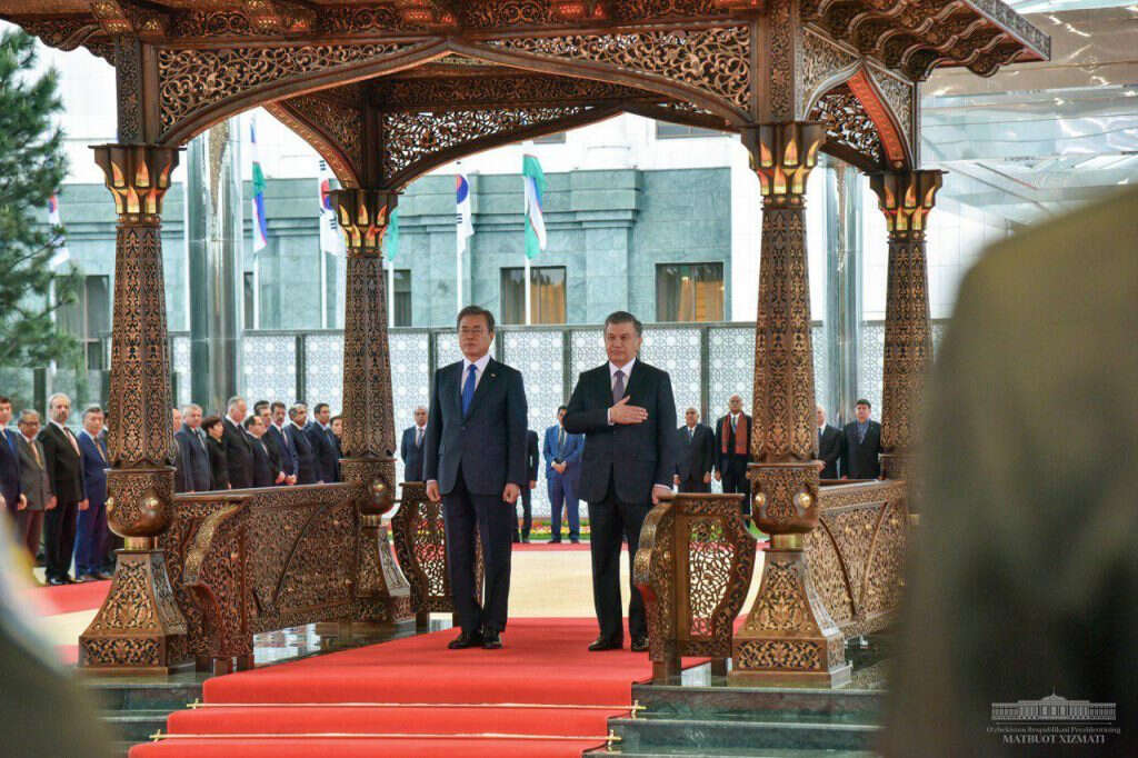 Güney Kore Cumhurbaşkanı Moon Jae-in daha sonra Özbekistan'ın Cumhurbaşkanlığı Sarayı olan "Köksaray"da resmi devlet töreni ile ağırlandı. Burada kendisini karşılayan Özbekistan Cumhurbaşkanı Şavkat Mirziyoyev ile önemli toplantılar gerçekleştirildi.