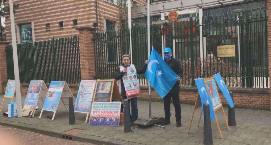 Doğu Türkistan’da Çin’in soykırıma varan insan hakları ihlallerini Avrupa’nın göbeğindeki Amsterdam’da tek başına duyuran Uygur Türkü Abdürrahim Gheni, Lahey'deki Çin Büyükelçiliği önünde Doğu Türkistan bayrağını göndere çekti. Hollanda'da geçen hafta parlamento, Çin'in Uygur Türklerine karşı soykırım işlediğini kabul etmişti.