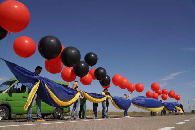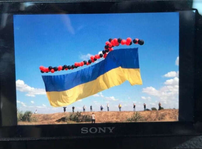 Eylem, 23 Ağustos Ukrayna Bayrak Günü arifesinde, 15 Ağustos 2020 tarihinde Ukrayna aktivistleri tarafından düzenlendi.