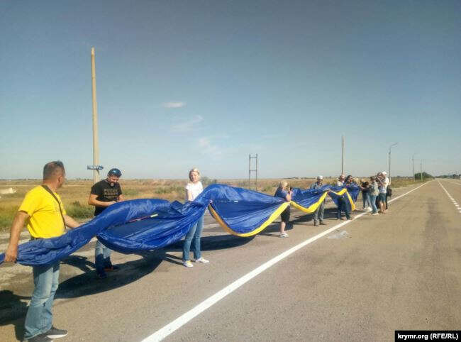Baluh eylemin, Rusya tarafından işgal edilen Kırım’ı terk etmek zorunda kalan insanların, ortak bir girişimi olduğunu kaydetti. 25 metrelik bayrak, işgal altındaki yarımadanın idari sınırındaki Çongar kontrol noktasının yanında uçuruldu. Ayrıca aktivistlerin, Ukrayna bayrağına siyah ve kırmızı balonlar ile Kırım sakinleri için 2 bin kartpostal bağladığı aktarıldı.