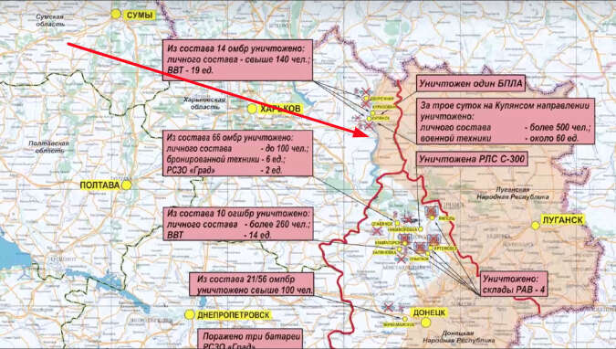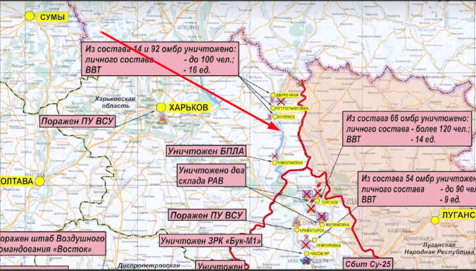 Bir gün önce, 3 Ekim 2022 tarihindeki basın toplantısında gösterilen haritalarda Oskol ve Siverskıy Donets Nehirlerinin doğu kıyısındaki Harkiv bölgesinin neredeyse tamamının Rusya tarafından kontrol edildiği belirtilmişti. Öte yandan 4 Ekim’de paylaşılan haritaya göre, Rus ordusu artık Dvoriçnıy'nin kuzeydoğusunda Rusya sınırına doğru olan bölgenin sadece küçük bir bölümünü kontrol ettiği görüldü.