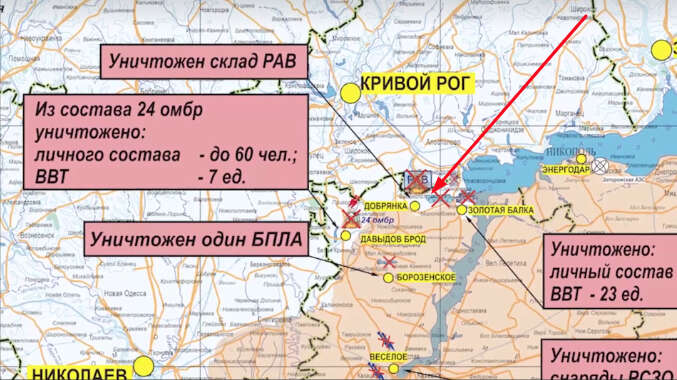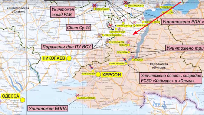 Herson bölgesinin kuzeyindeki geri çekilme ise Rusya Savunma Bakanlığının yayımladığı haritalara yansıdı. Savunma Bakanlığının paylaştığı Herson bölgesindeki geri çekilmenin boyutu bağımsız gözlemcilerin ve Rus yanlısı askeri blog yazarlarının haritalarından daha büyük ölçekli olduğu ortaya çıktı. 3 Ekim’de gösterilen haritada cephe hattı Davıdiv Brid, Dobryanka ve Zolota Balka yerleşim yerleri yakınlarında geçiyordu. Öte yandan 4 Ekim’de Rusya Savunma Bakanlığı, cephe hattının güneye doğru yaklaşık 30 kilometre kaydığını gösterdi.