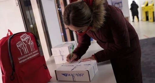 "Biz, Kazakistan Halk Partisi gençlik kolları olarak, size dünyaca meşhur ve sevilen, ambalajında da modern bağımsız egemen bir devletin - Kazakistan Cumhuriyeti'nin haritası olan Kazakistan çikolatasını gönderiyoruz. Sağlıkla yiyin, tarih ve coğrafya öğrenin!"