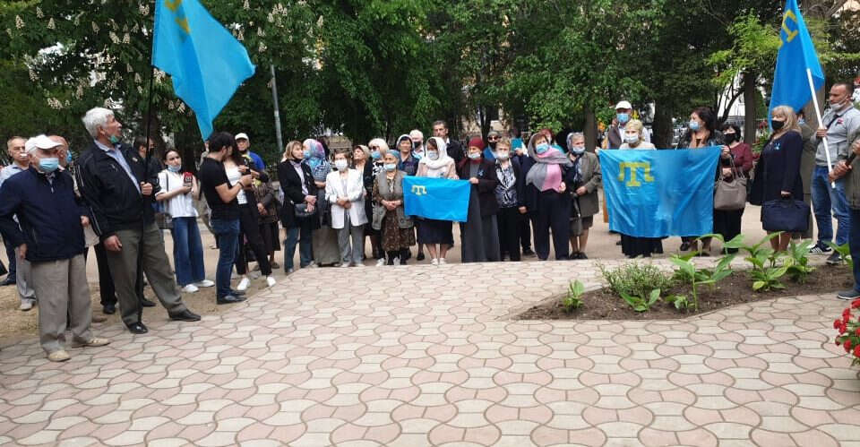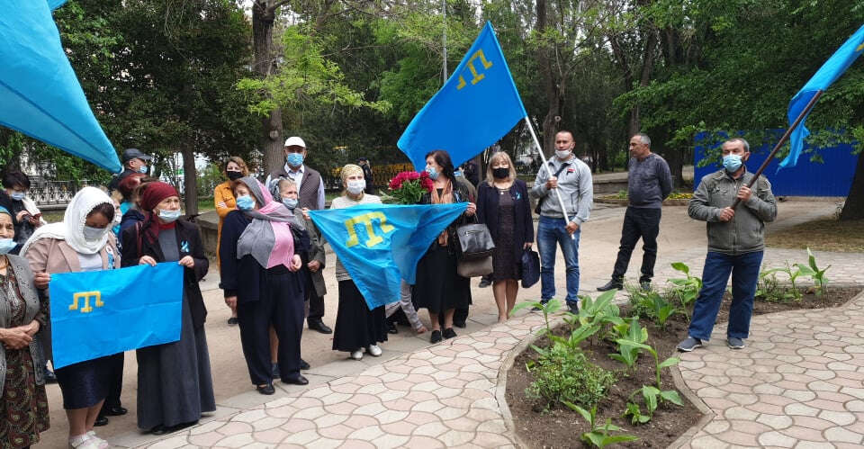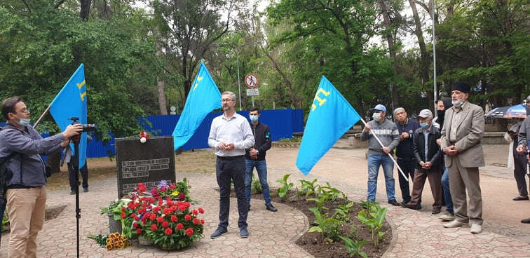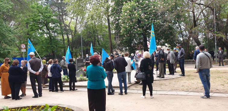 Kırım'ın başkenti Akmescit'te bir grup Kırım Tatarı, tren garının önündeki medyanda yıllardır dikilmesi planlanan ama bugüne kadar dikilemeyen sürgün anıtının olacağı yerde toplanıp dualar okuyup soykırım kurbanlarını andılar.
