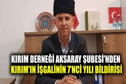 Kırım Türkleri Kültür ve Yardımlaşma Derneği Aksaray Şubesi Başkanı Rıdvan Çağlayan, Kırım'ın işgalinin 7. yılı ile dolayısıyla yazılı açıklamada bulundu. Kırım'ın kaim halkının Kırım Tatarlarının olduğu vurgusu yapılan açıklamada, "Kırım, Türk yurdudur ve öyle kalacaktır. Rusya'ya asla boyun eğmeyeceğiz." ifadeleri vurgulandı.