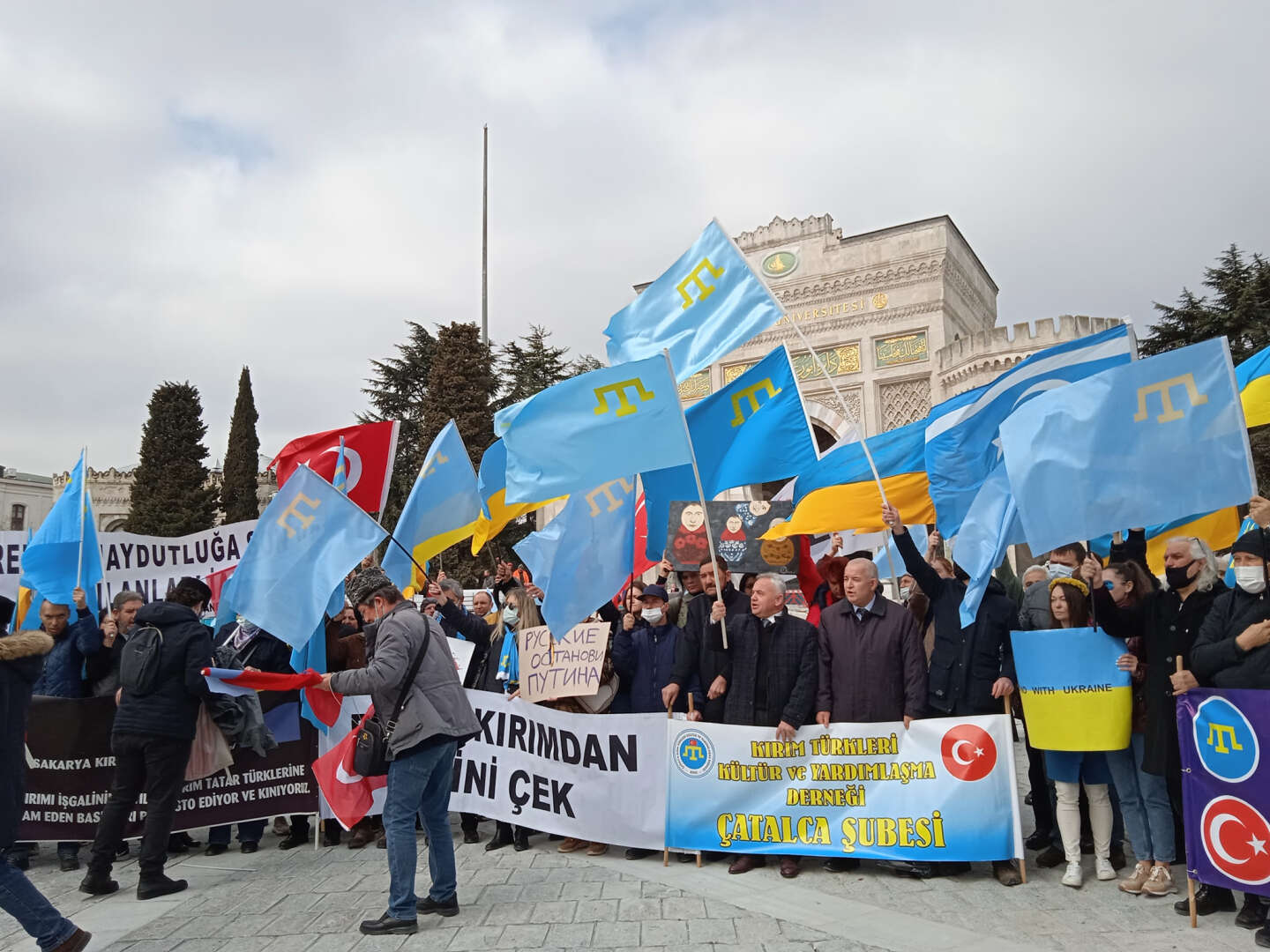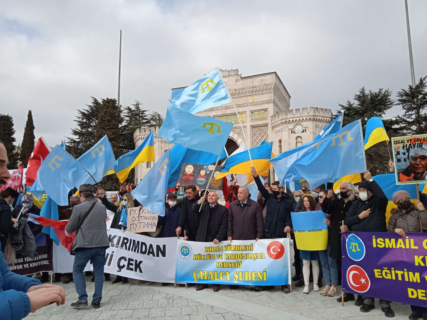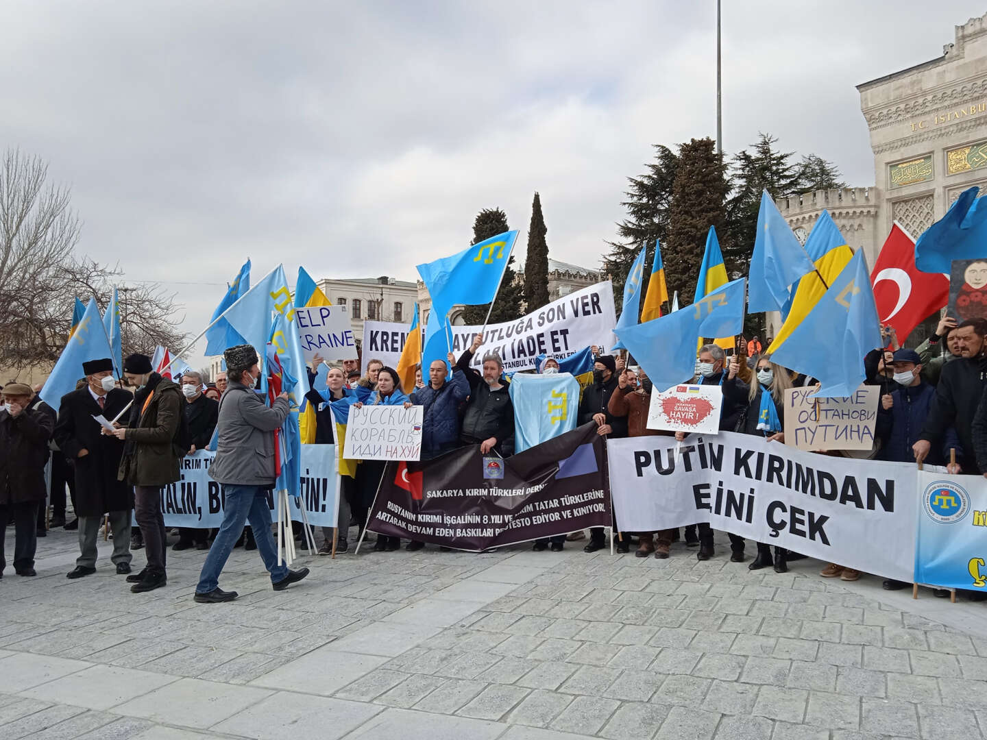 Kırım’ın Rusya tarafından işgal edilmesinin 8’inci yılında, İstanbul’da Kırım Derneği İstanbul Şubesi tarafından protesto mitingi düzenlenerek basın açıklamaları okundu. Mitinge; Kırım Derneği Çatalca Şubesi, Sakarya Kırım Türkleri Derneği, İsmail Gaspıralı Kırım Eğitim ve Kültür Derneği başta olmak üzere çok sayıda Kırım Tatar sivil toplum kuruluşu, İstanbul'da yaşayan Ukraynalılar ile sivil toplum kuruluşları ve kayıtsız kalmayan vatandaşlar katıldı.
