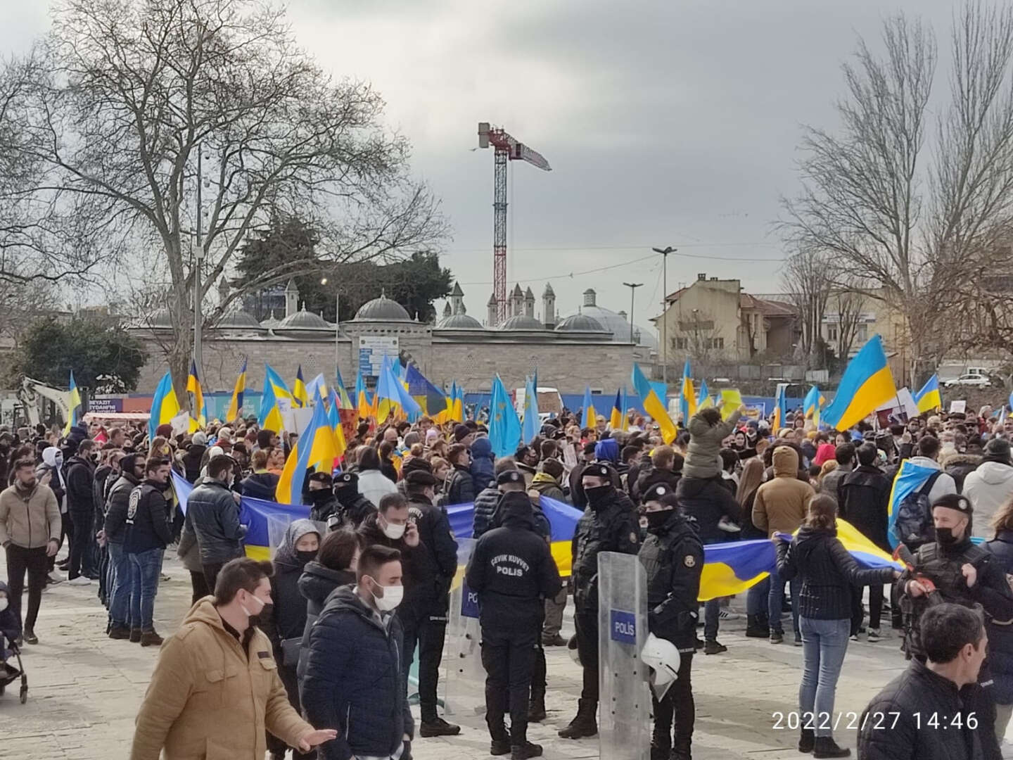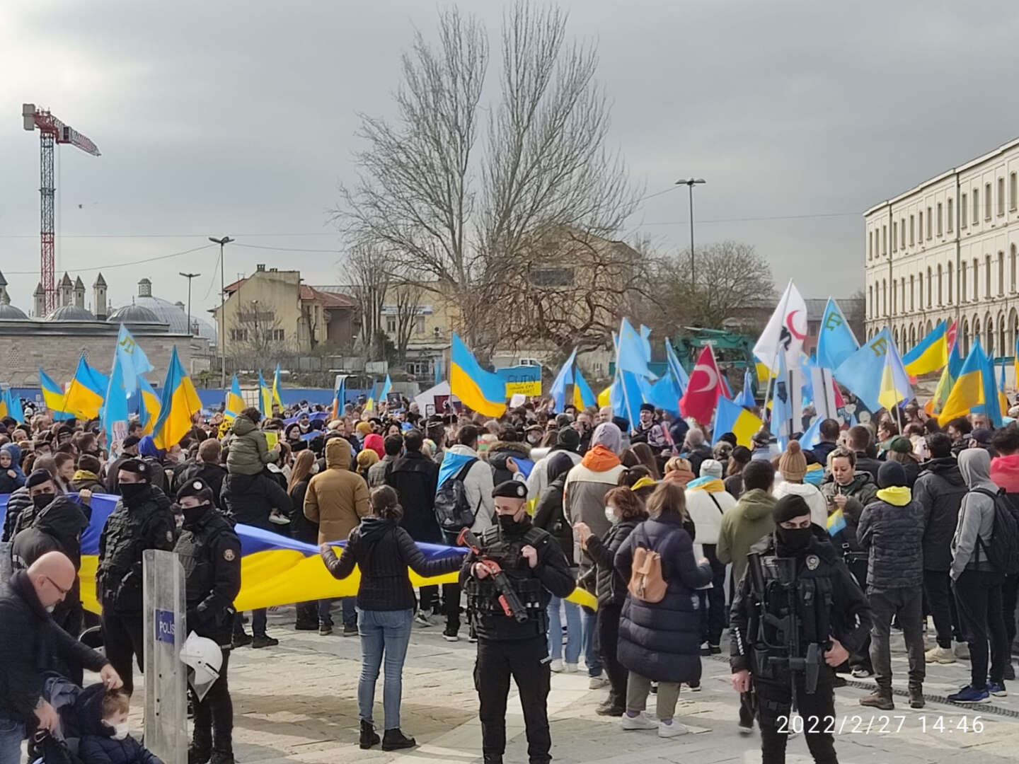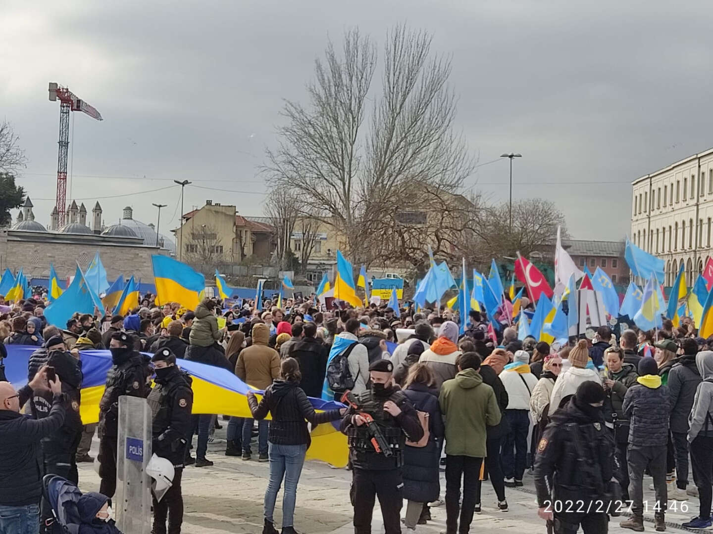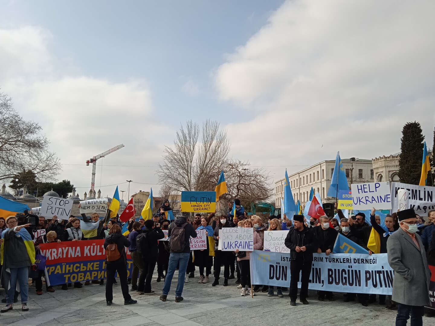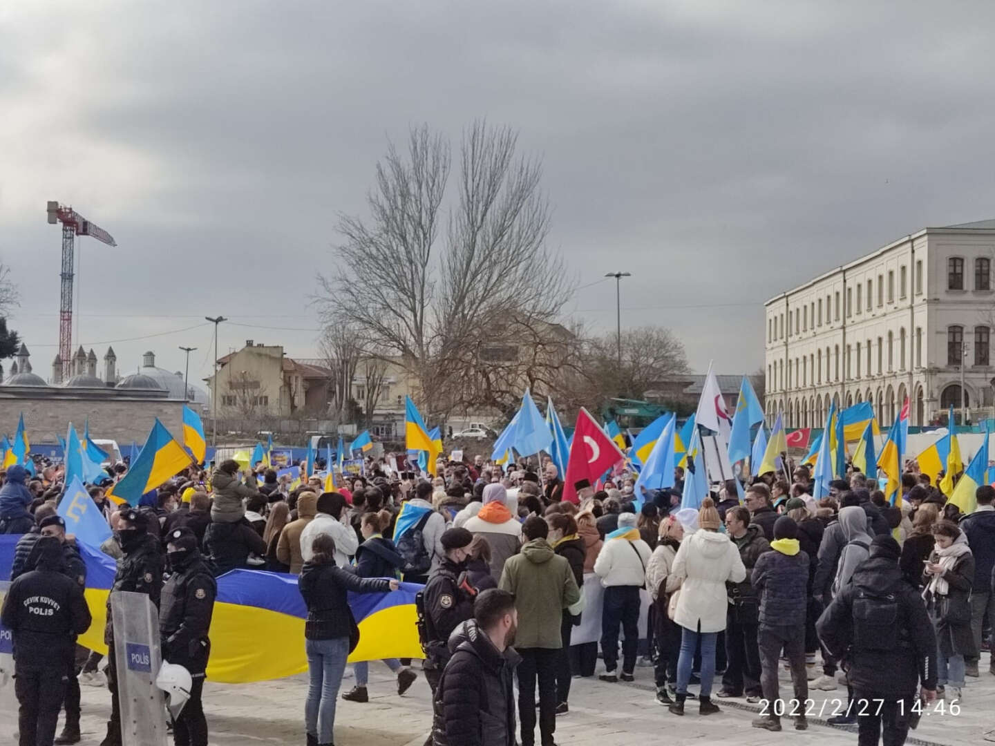 Beyazıt Meydanında bugün gerçekleştirilen protestoya, işgalci Rusya karşıtı pankartları ile Ukrayna, Türkiye ve Kırım Tatar bayraklarının taşındı, duyarlı vatandaşlar mitinge yoğun ilgi gösterdi.
