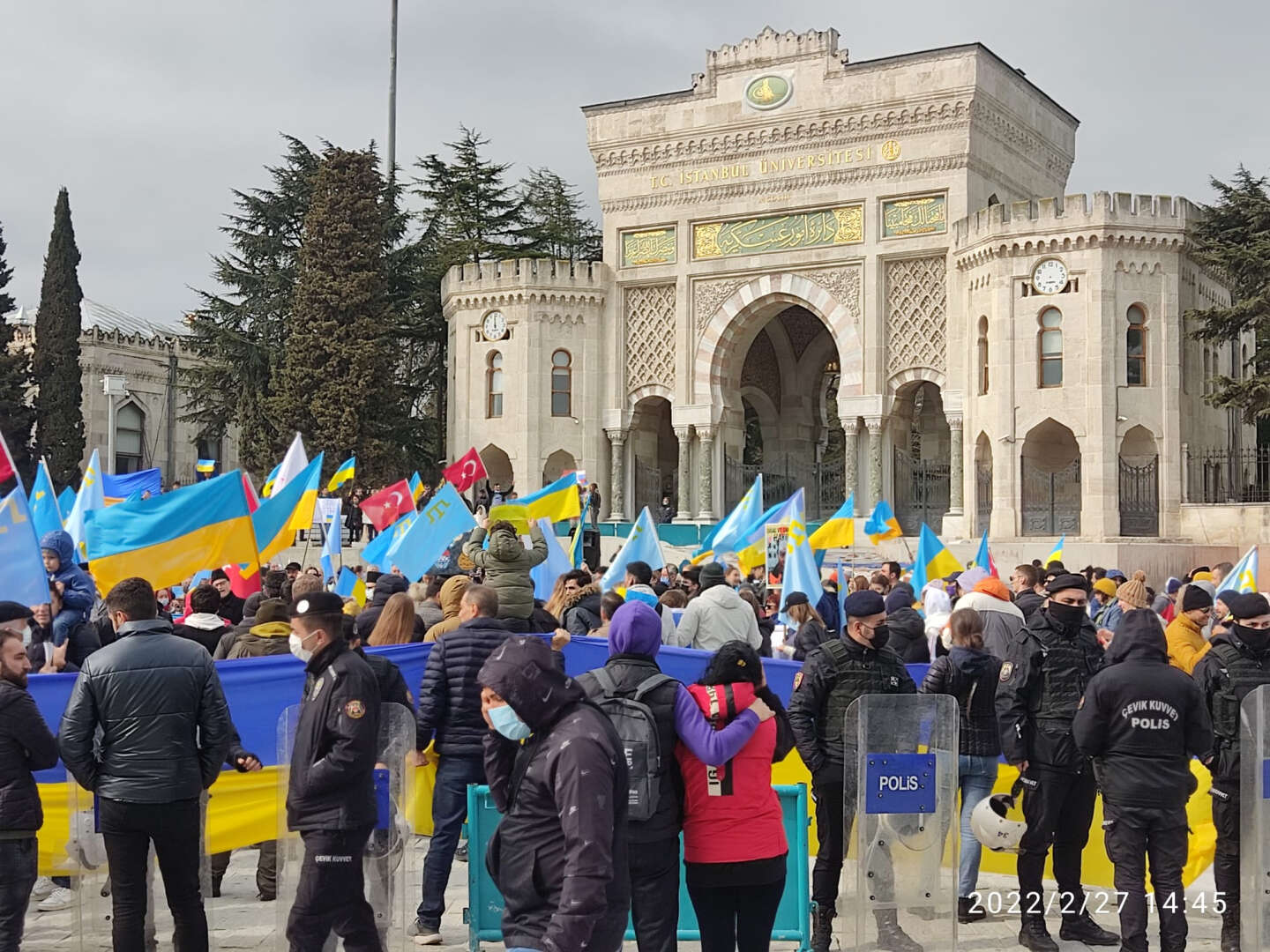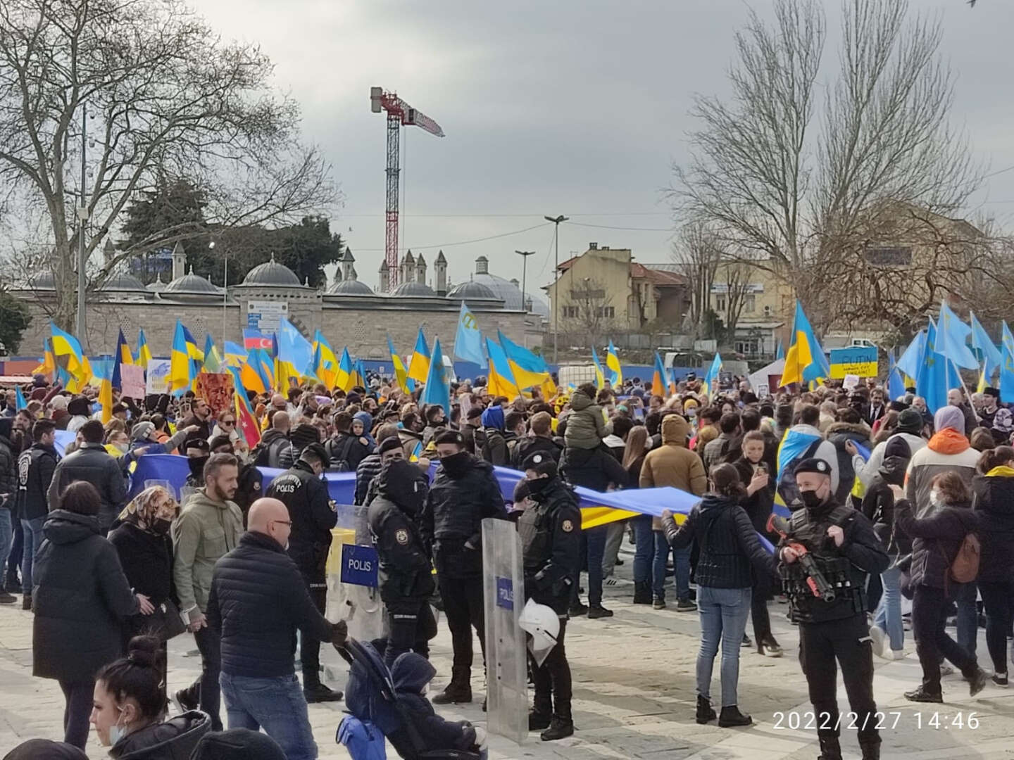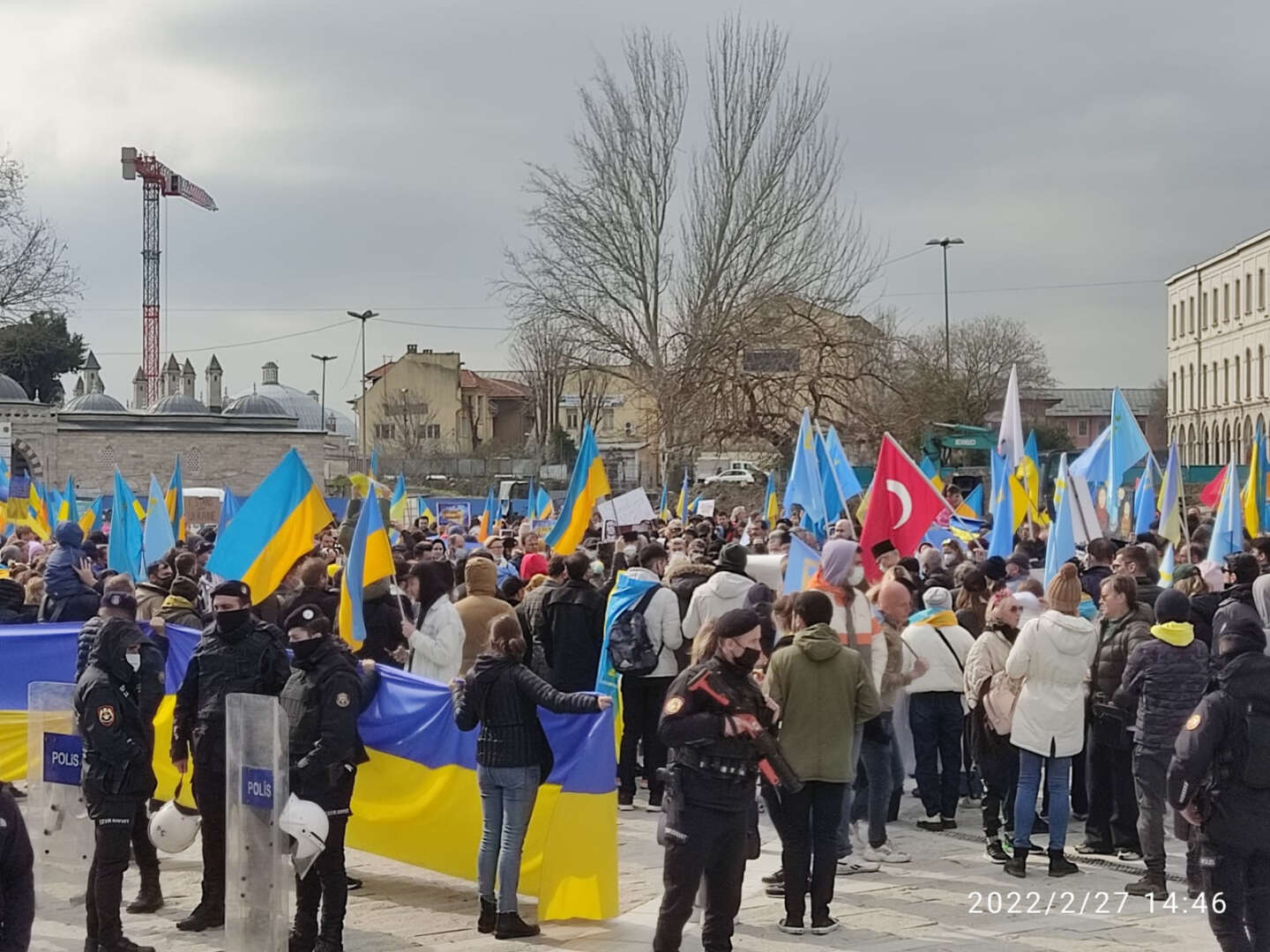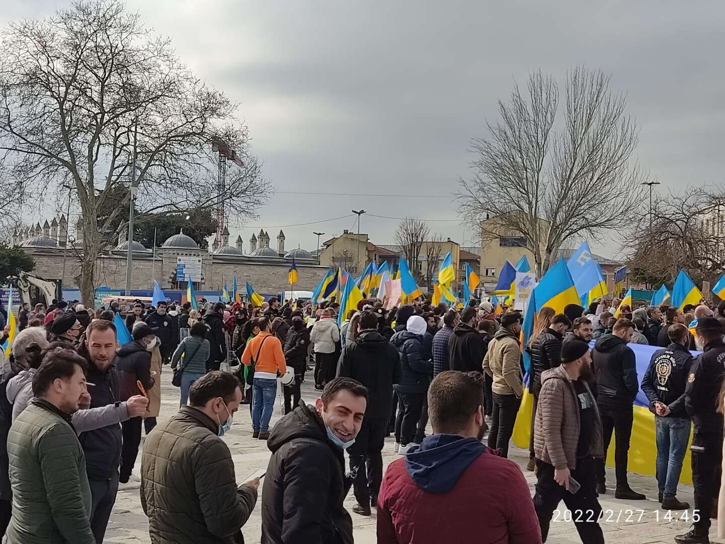 Beyazıt Meydanında bugün gerçekleştirilen protestoya, işgalci Rusya karşıtı pankartları ile Ukrayna, Türkiye ve Kırım Tatar bayraklarının taşındı, duyarlı vatandaşlar mitinge yoğun ilgi gösterdi.