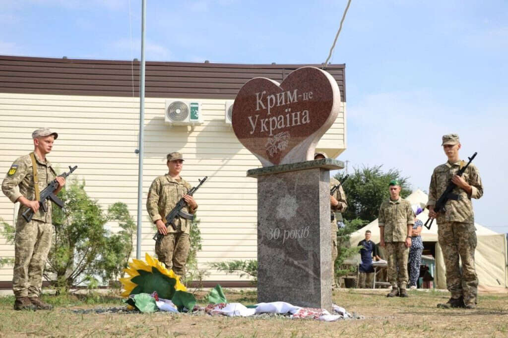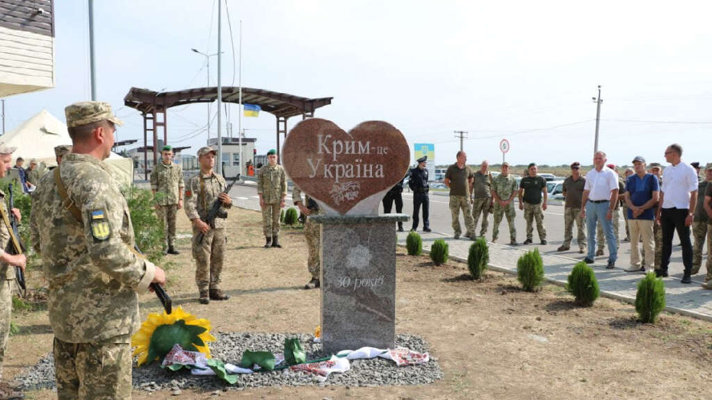 Kırım idari sınırındaki Kalançak kontrol noktasında, Ukrayna'nın bağımsızlığının 30'uncu yıl dönümüne ithafen "Kırım Ukrayna'dır" yazılı, kalp şeklinde granit bir anıt dikildi.