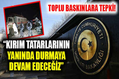 "TÜRKİYE, KIRIM TATARLARININ YANINDA OLMAYA DEVAM EDECEK"Açıklamada, "Kırım’da dün (17 Şubat) sabah saatlerinde soydaş Kırım Tatar Türklerinin evlerine yapılan baskınları ve alınan gözaltı kararlarını endişeyle karşılıyoruz." ifadelerine yer verildi. Ayrıca Kırım Yarımadası’nın asli unsurları olan Kırım Tatarlarına yönelik bu tür uygulamalara son verilmesi çağrısı yapılarak, "Kırım’ın yasadışı ilhakını tanımayan Türkiye, Kırım Tatarlarının yanında durmaya devam edecektir." vurgusu yapıldı.