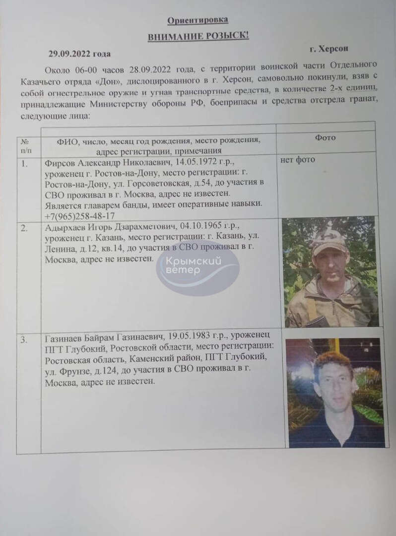 Herson bölgesinde görev yapan 13 Rus askerinin silah ve mühimmatla birlikte işgal altındaki Kırım’a kaçtığı bildirildi. Herson’daki sözde yönetimin dağıttığı ihbar kağıtlarına göre Herson kentinde konuşlandırılan silahlı grubun 13 üyesi, 28 Eylül’de silah, mühimmat ve 2 araçla birlikte kaçtı. Kaçakların Herson’dan Kırım’a kaçtığı belirtilirken yarımadadaki “polisin” alarma geçirildiğini aktarıldı. Ancak kaçaklar bir haftadır bulunamıyor.