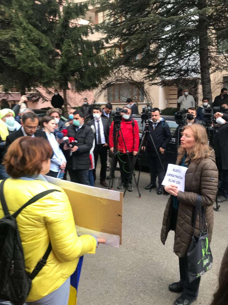 Rusya'nın Ukrayna'ya saldırısı sonrasında Ankara'daki Ukrayna diasporası ve Kırım Tatar diasporası, Ukrayna Ankara Büyükelçiliği önünde bir araya geldi. Kırım Derneği Genel Başkanı Mükremin Şahin, Ukrayna Ankara Büyükelçiliği önünde basın açıklaması yaptı.