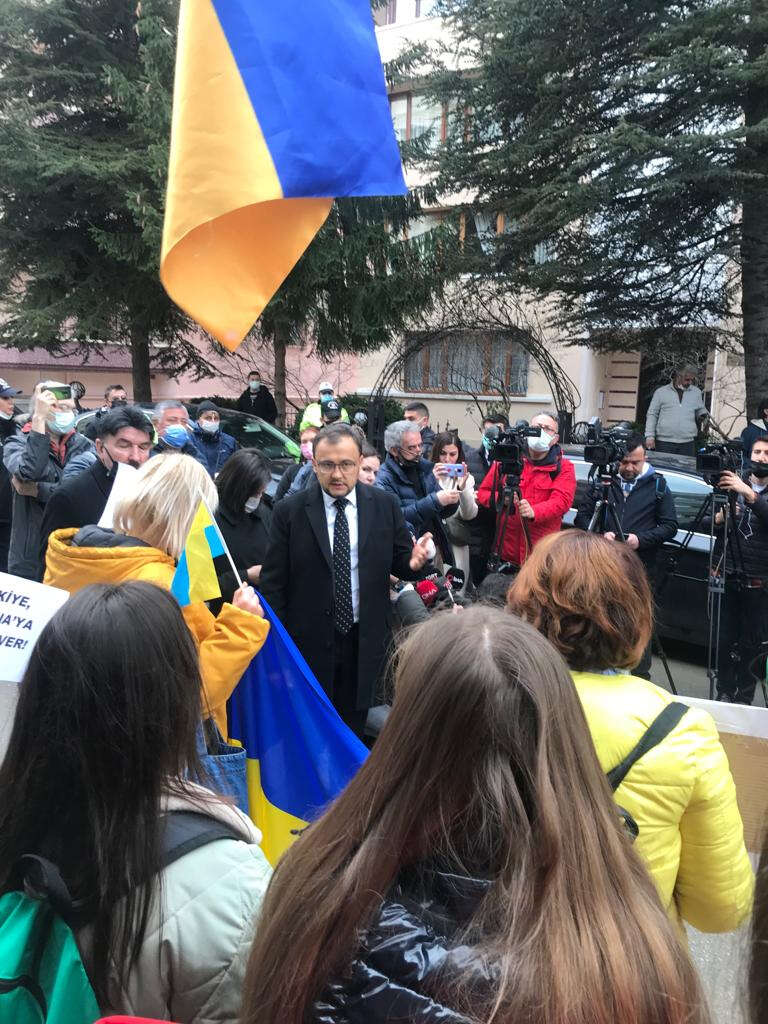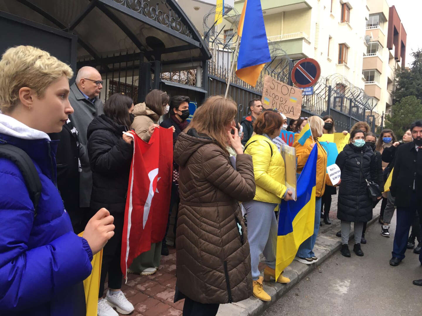 Rusya'nın Ukrayna'ya saldırısı sonrasında Ankara'daki Ukrayna diasporası ve Kırım Tatar diasporası, Ukrayna Ankara Büyükelçiliği önünde bir araya geldi. Ukrayna Ankara Büyükelçisi Vasıl Bodnar ve Kırım Derneği Genel Başkanı Mükremin Şahin, Ukrayna Ankara Büyükelçiliği önünde basın açıklaması yaptı.